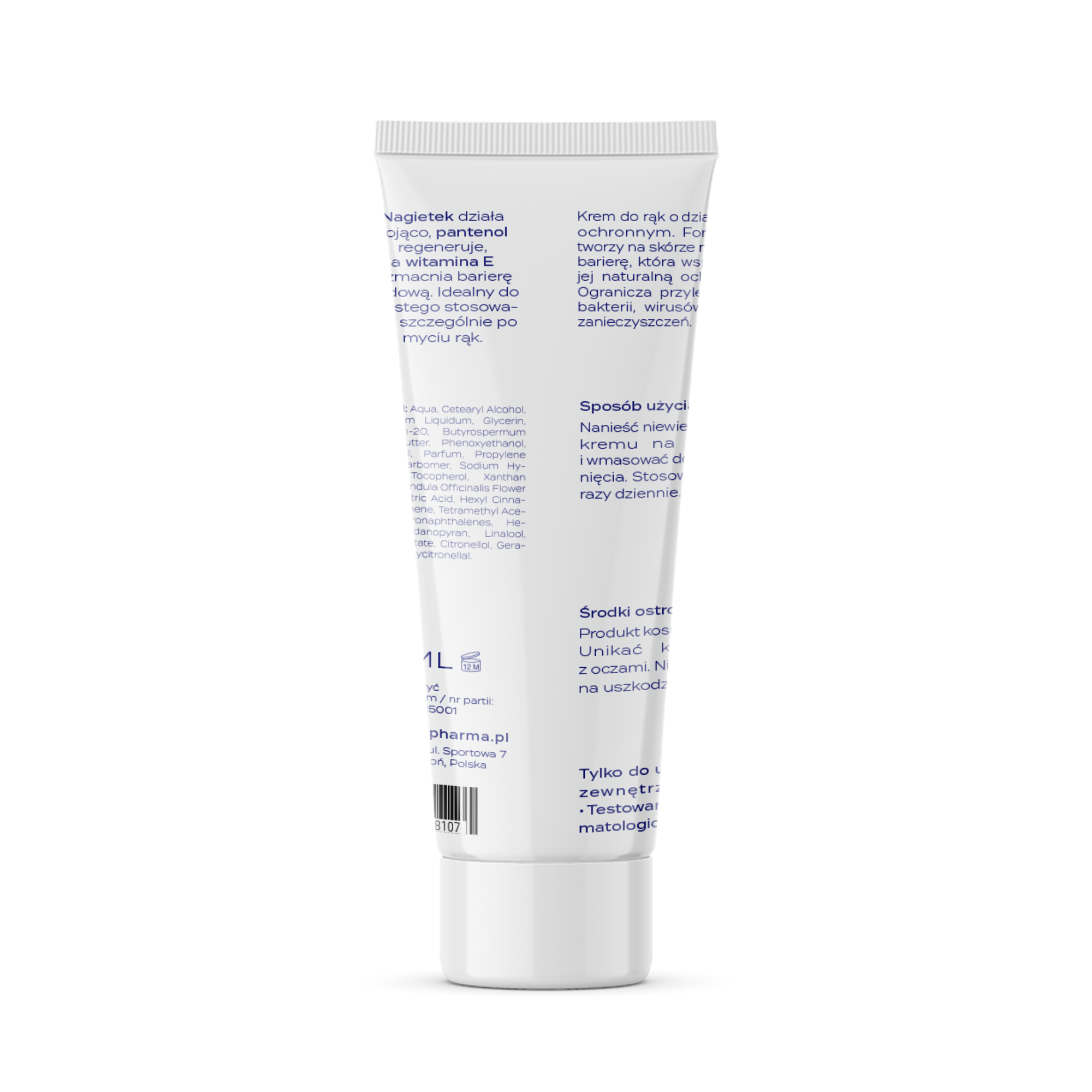 Barierowy krem do rąk AntiVir 75 ml to ochronny krem pielęgnacyjny przeznaczony do codziennej pielęgnacji skóry dłoni, szczególnie narażonej na częste mycie oraz kontakt z czynnikami zewnętrznymi. Lekka formuła tworzy na skórze delikatną mikro-barierę, która wspiera jej naturalną ochronę i pomaga ograniczać przyleganie bakterii, wirusów oraz zanieczyszczeń z otoczenia. Regularne stosowanie kremu pomaga utrzymać dłonie w dobrej kondycji, pozostawiając je miękkie, gładkie i zadbane. Barierowy krem do rąk AntiVir szybko się wchłania i nie pozostawia tłustej warstwy, dzięki czemu sprawdza się zarówno w domu, jak i w pracy. Produkt jest odpowiedni do częstego stosowania – szczególnie po myciu lub dezynfekcji rąk.